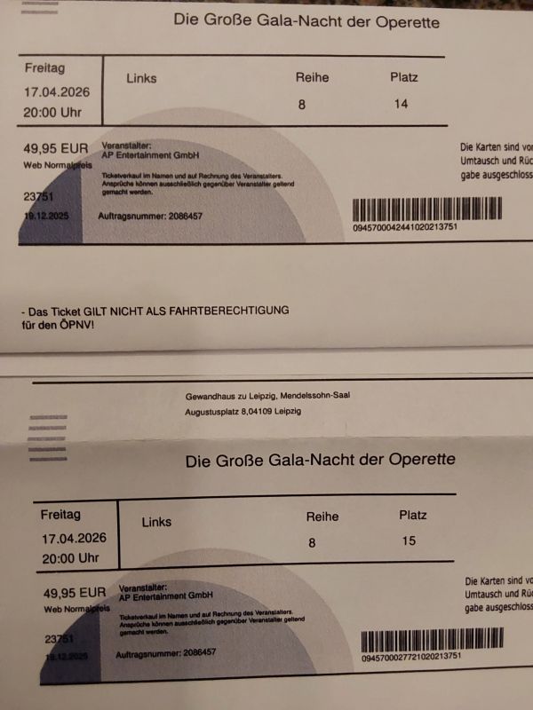 "Große Gala-Nacht der Operette" im Gewandhaus Leipzig am 17.04.26