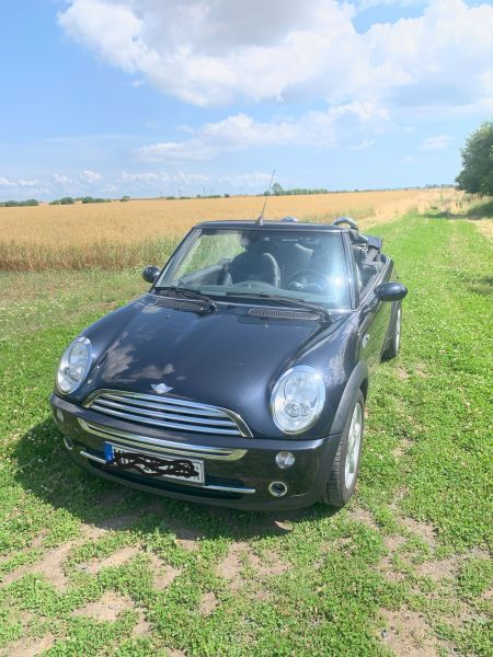 Mini Cooper r52 Cabrio, TÜV ohne Mängel 8/27, mit Business Ausstattung, Vollleder Sitze, Sitzheizung, Navigation, Bluetooth, Windschott, Alufelgen, Aussenfarbe ist Mitternachtsblau-Metalic. Scheckheftgepflegt, Ein echter Renner.